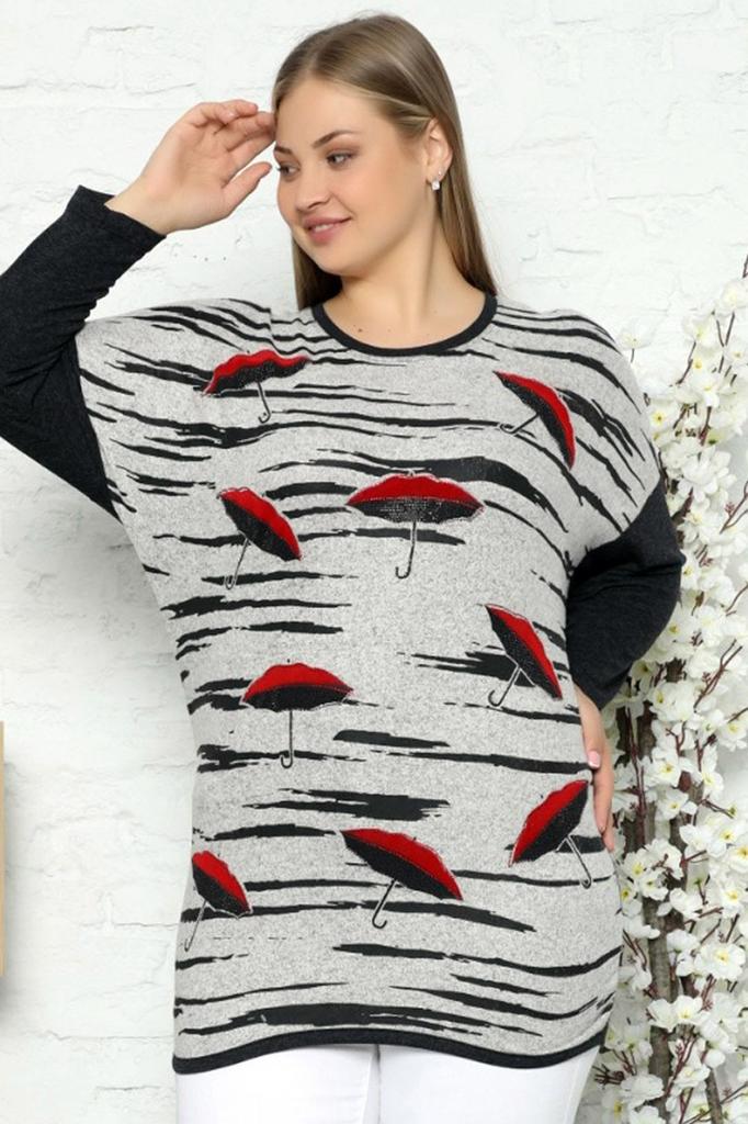 Женская стильная туника больших размеров, специальный дизайн, блузка с зонтиком и вышивкой камнями, низкими плечами и длинными рукавами