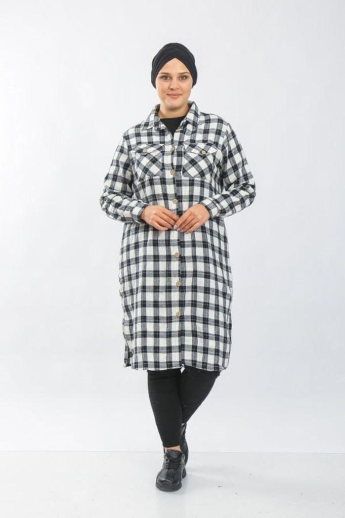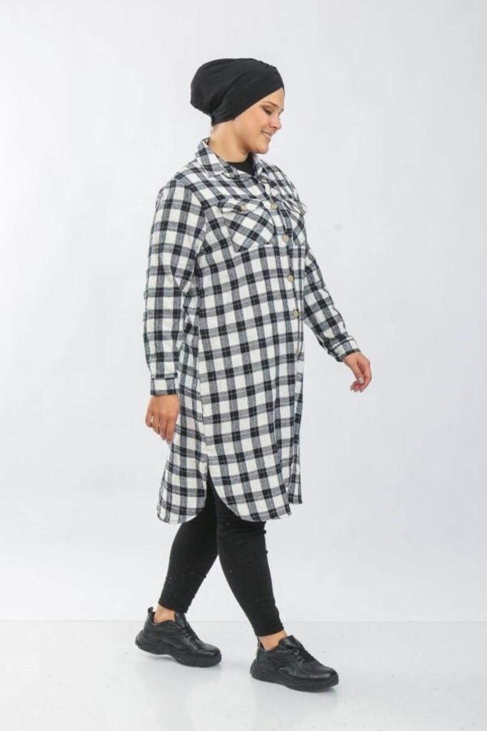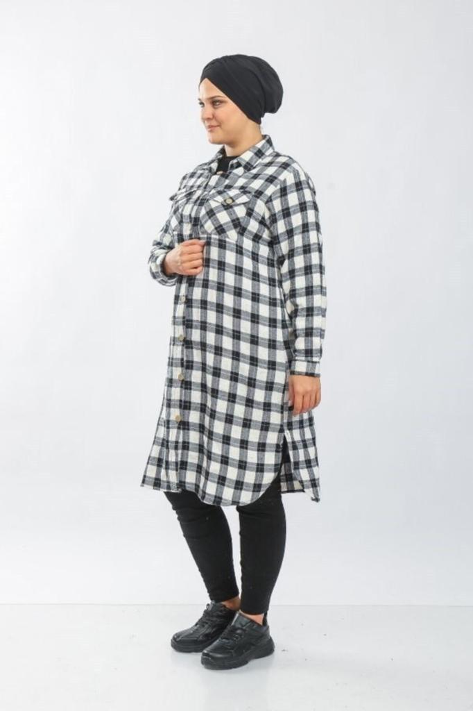 Женская рубашка больших размеров, толстая длинная рубашка большого размера, черно-белая вложенная квадратная рубашка