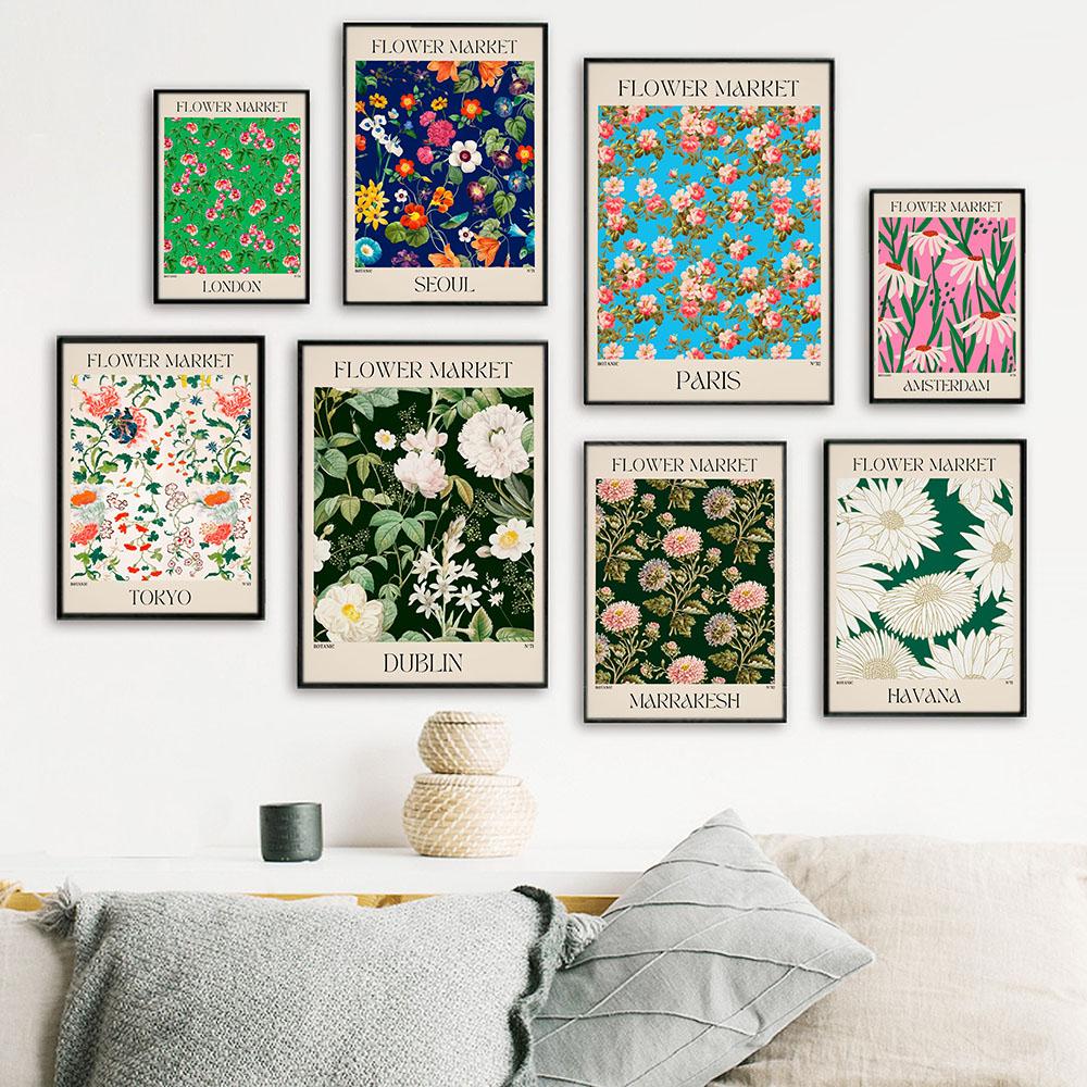 Цветочный рынок Париж Лондон печать плакатов винтажная ботаническая картина на холсте с растениями абстрактная настенная живопись скандинавская картина для гостиной