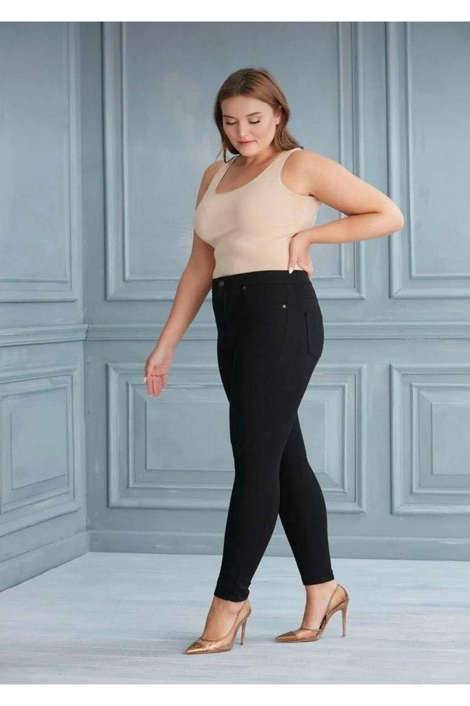 Женские брюки больших размеров, черные брюки из лайкры большого размера