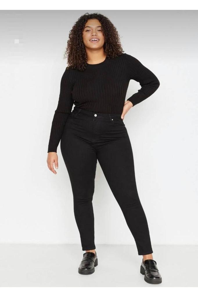 Женские брюки больших размеров, черные нелиняющие джинсы скинни с высокой талией