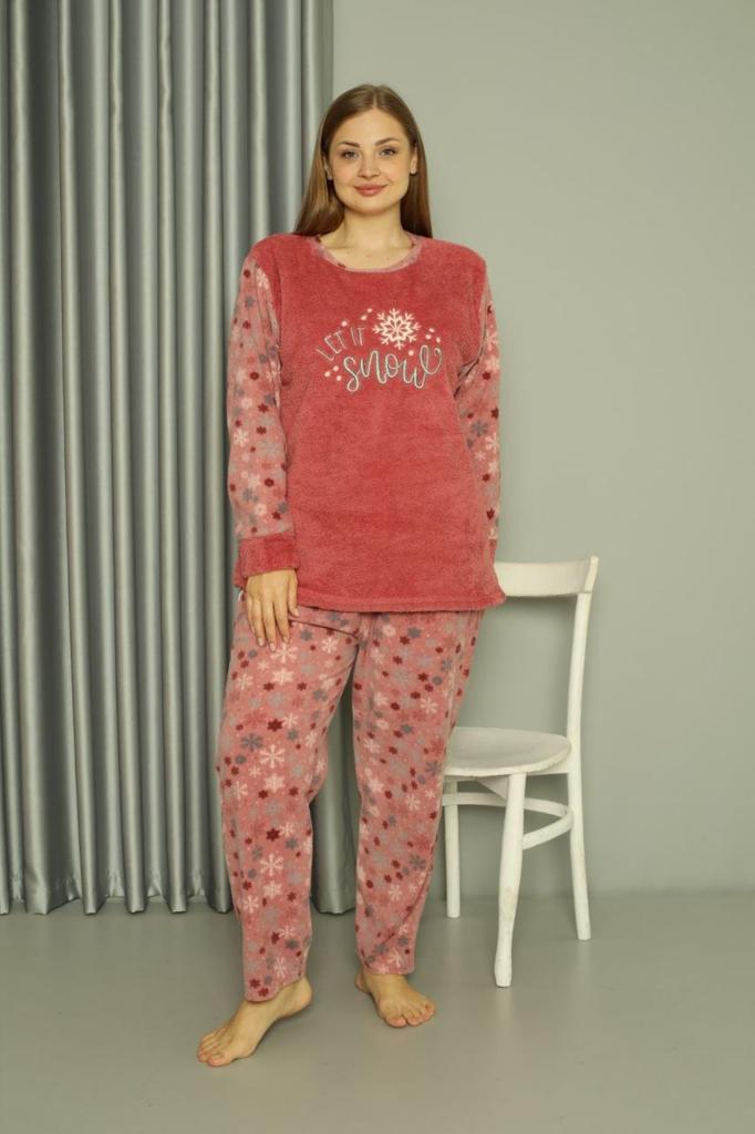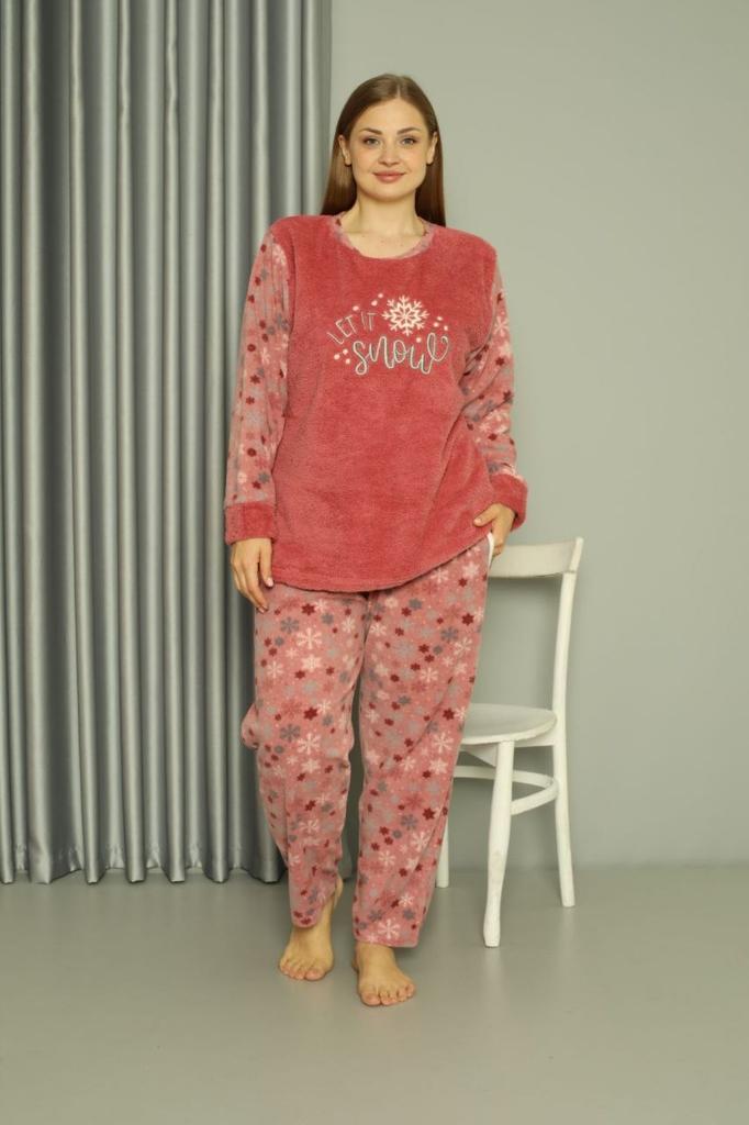 Женский стильный пижамный комплект больших размеров, теплый флисовый плюшевый пижамный комплект большого размера Welsoft