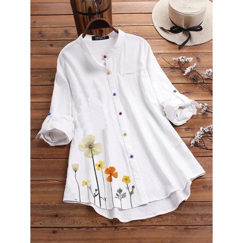 Женская рубашка на пуговицах с круглым вырезом, классическая модная рубашка с длинными рукавами и цветочным узором, офисная рабочая рубашка, блузка — купить товар онлайн с бесплатной доставкой по всему миру!
