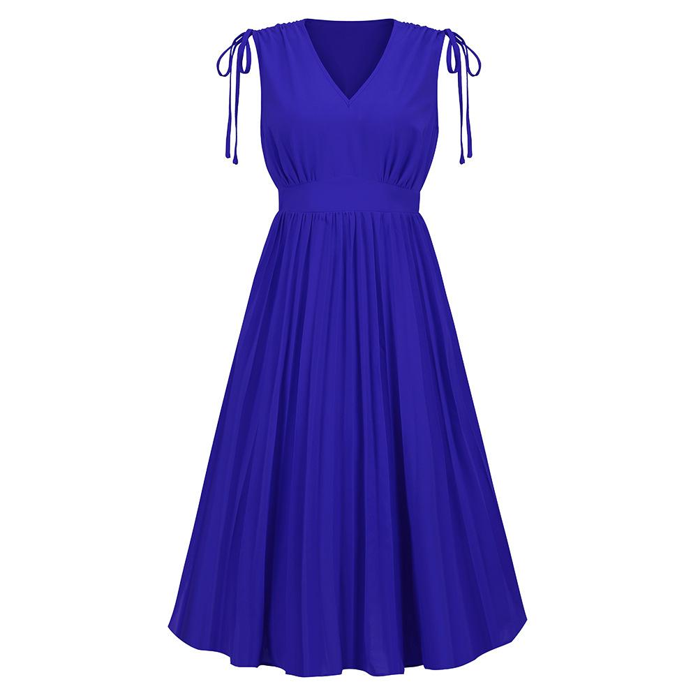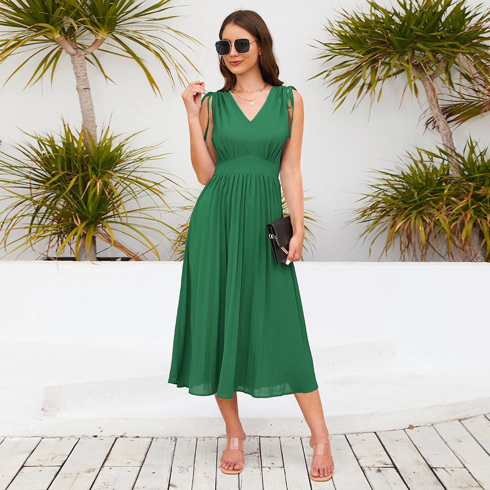 Женские однотонные плиссированные сексуальные платья с v-образным вырезом и v-образным вырезом, однотонные, без рукавов, в европейском и американском стиле, большие размеры