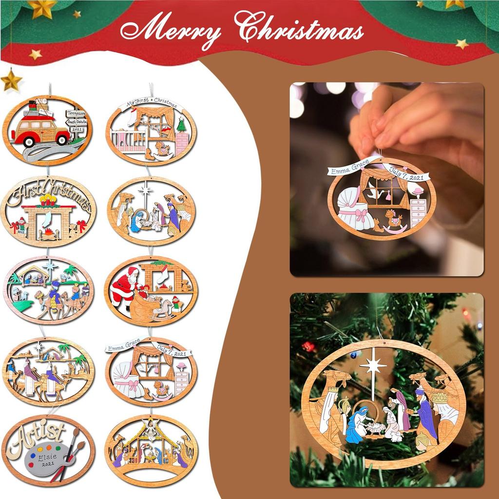 Деревянные подвески, украшения для рождественской елки, DIY изделия из дерева, детский подарок для дома, украшения для рождественской вечеринки