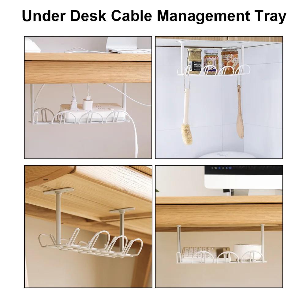 Подстольный стеллаж для хранения, стеллаж для сортировки проводов и полос питания, прочная подвесная клейкая розетка, лоток для прокладки кабелей