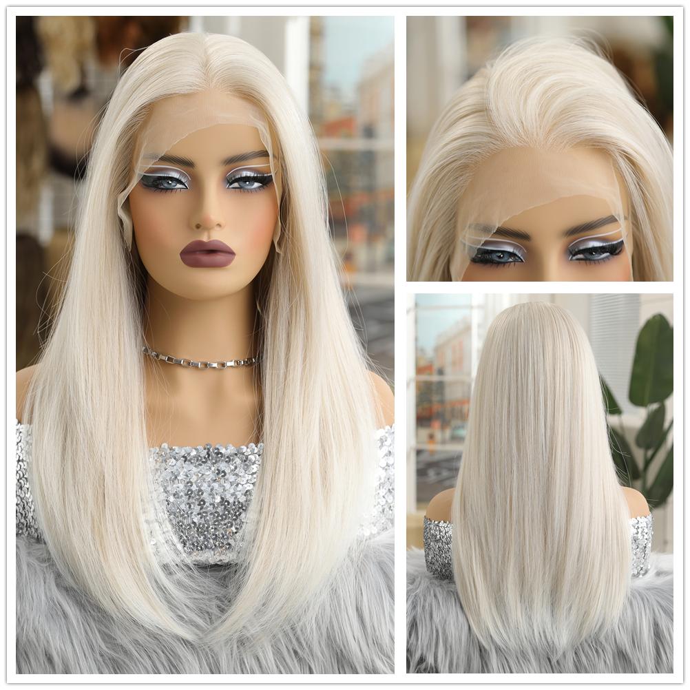 13x6 кружевные парики, светлый платиновый синтетический длинный прямой парик с лентами для женщин, повседневный косплей, волосы высокой плотности — купить товар онлайн с бесплатной доставкой по всему миру!