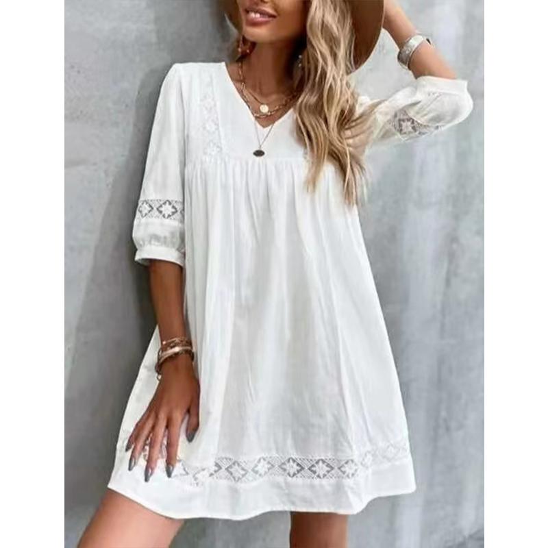 Простое свободное повседневное платье с V-образным вырезом и длинными рукавами — купить товар онлайн с бесплатной доставкой по всему миру!