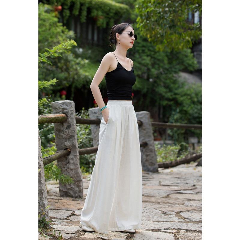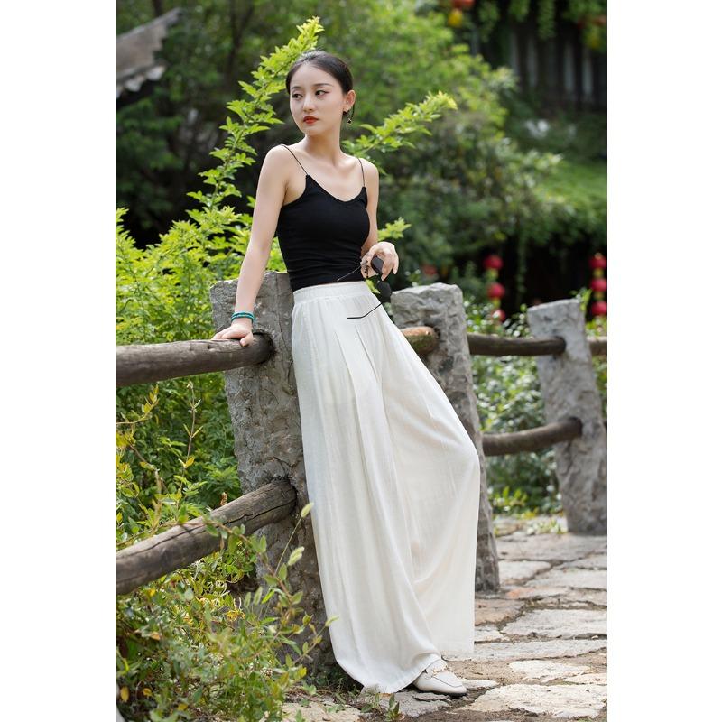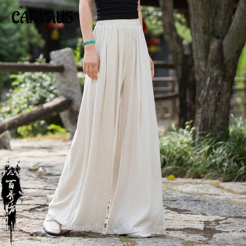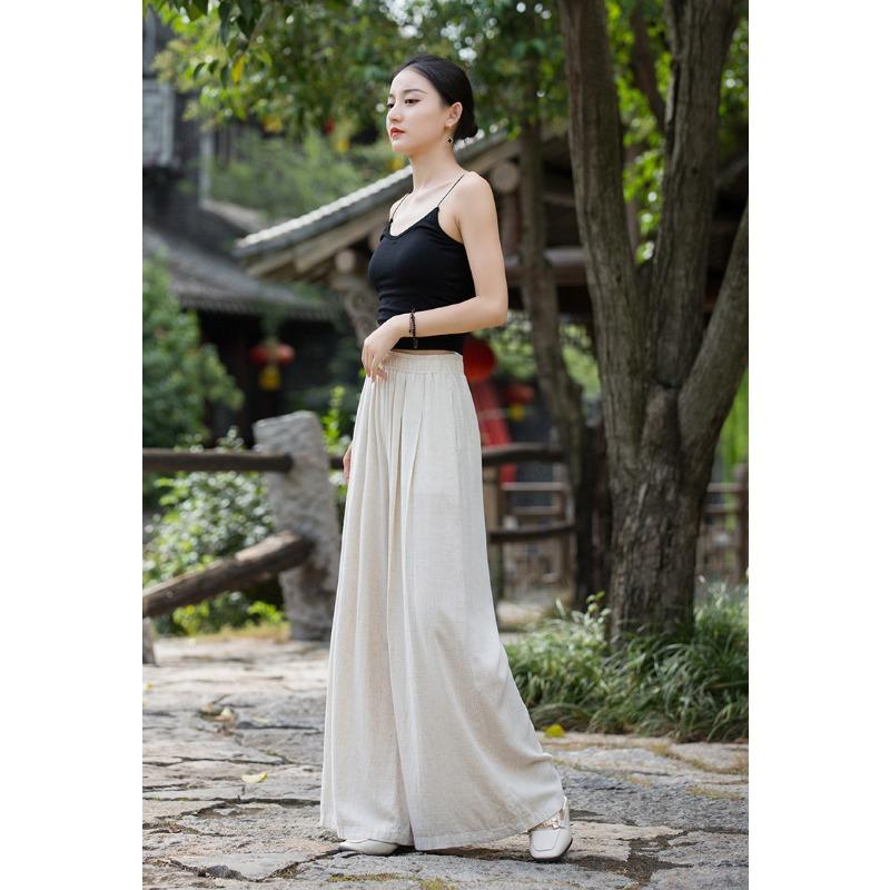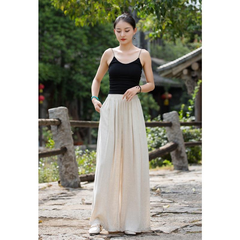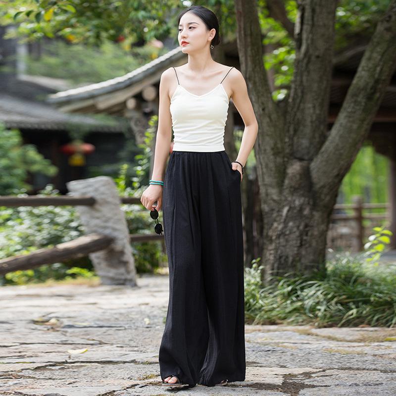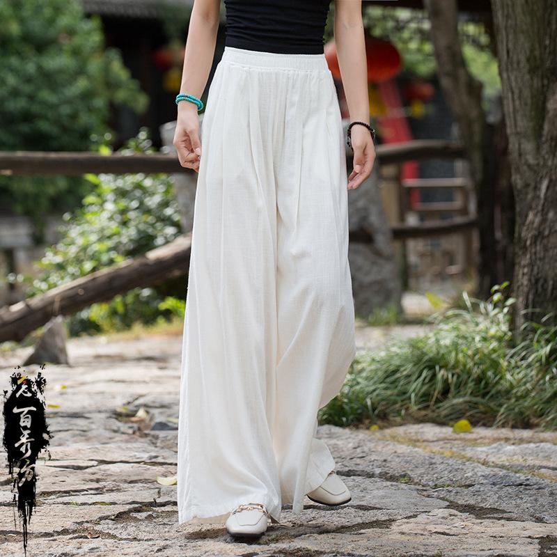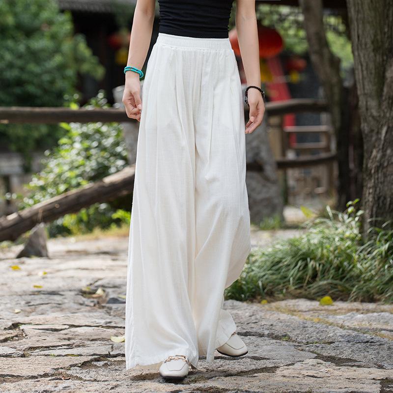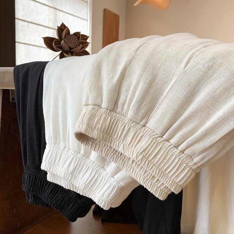 Весна, лето и осень, хлопковые льняные женские брюки больших размеров, струящиеся и эффектные широкие брюки