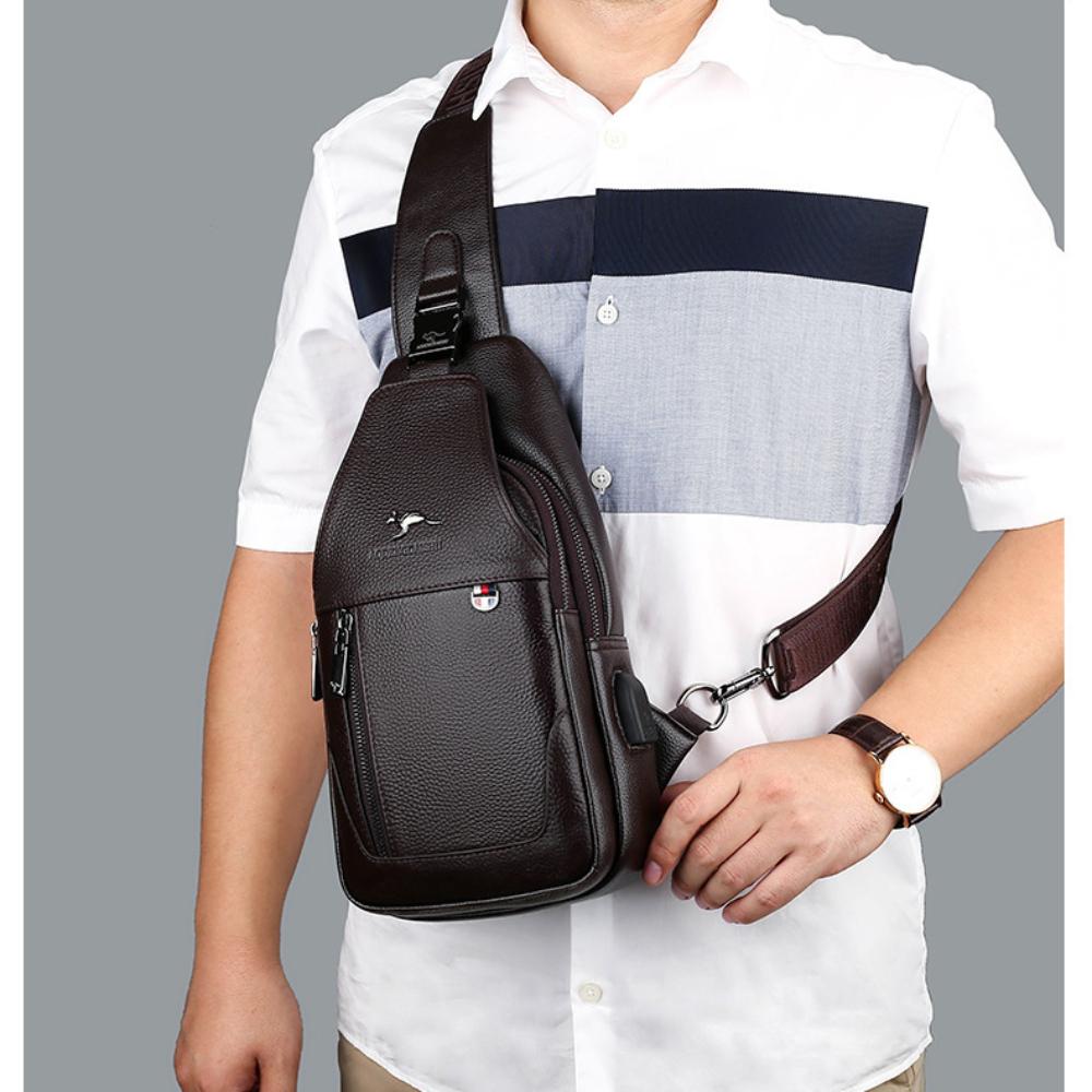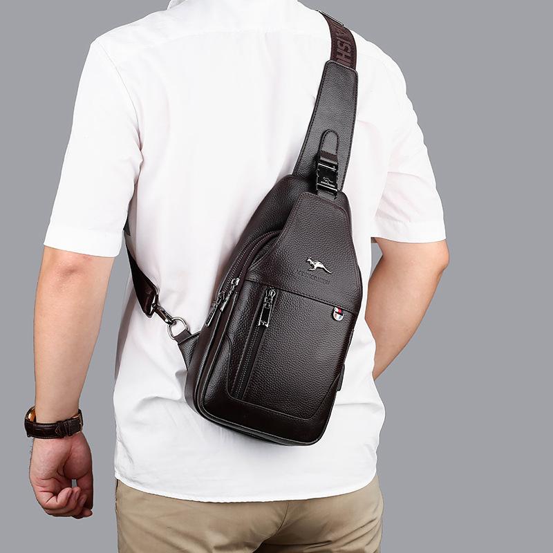 Мужская кожаная нагрудная сумка, повседневная сумка-мессенджер, большой вместимости, спортивная сумка-рюкзак