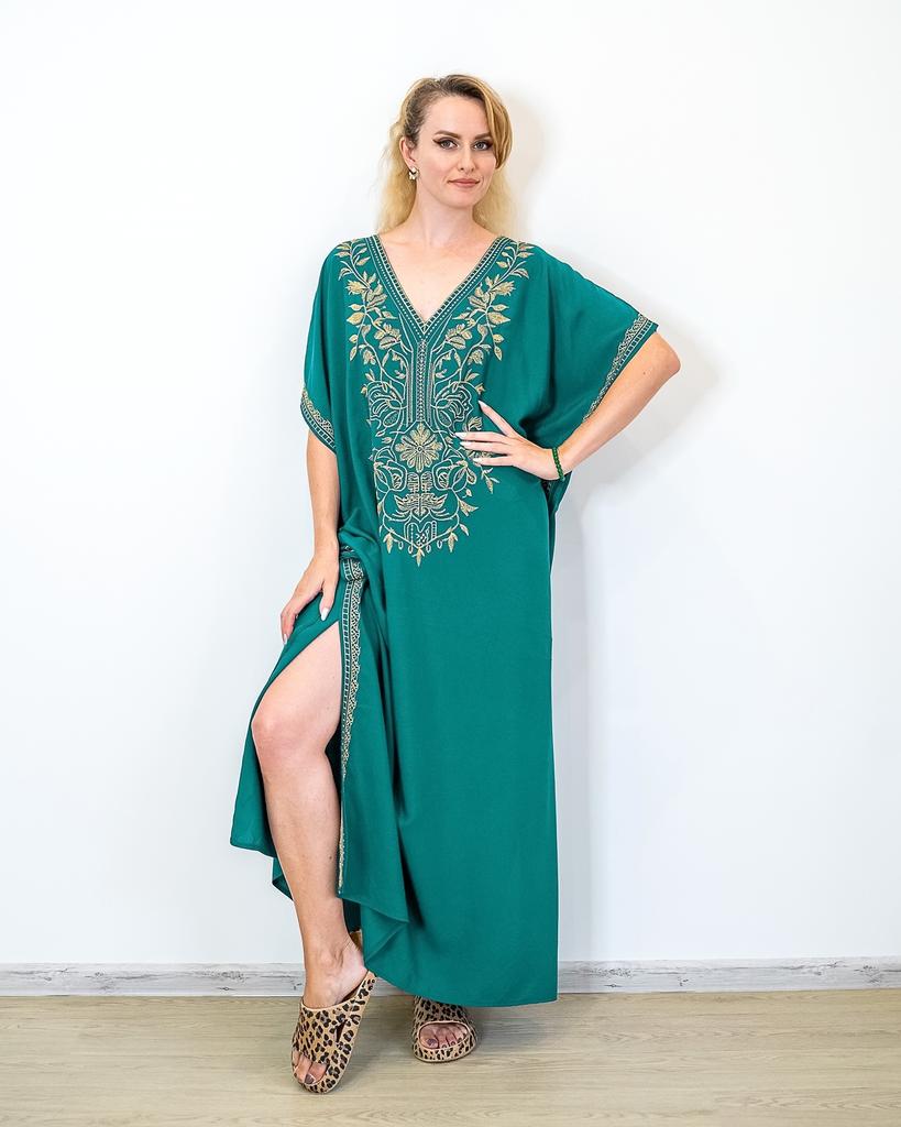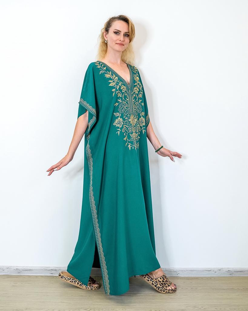EDOLYNSA 2024 сексуальное V-образным вырезом с рукавами «летучая мышь» с золотой вышивкой повседневное пляжное длинное платье женский летний купальник прикрытие расслабленные платья для отдыха и вечеринок — купить товар онлайн с бесплатной доставкой по всему миру!