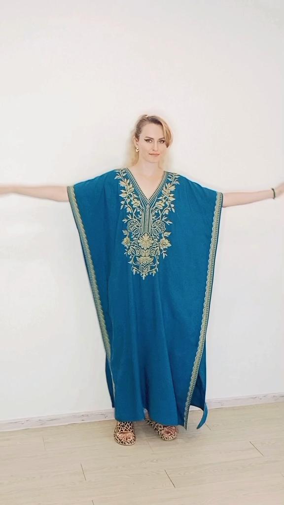 🏖️ Безразмерное пляжное платье-туника на высокий рост от Edolynsa Хотя цвет указан как зелёный, на самом деле, туника бирюзового насыщенного цвета, очень красивый сложный оттенок. В этом цвете ткань прям более благородно смотрится, чем она есть, даже на видео это передаётся. 100% вискоза! Шикарная туничка-размахайка, подойдёт и как пляжный вариант, и в город ходить с пояском добавленным, или дома ходить красиво, применений может быть несколько. Данная модель пришла ну прям очень длинной, и даже декольте прям глубокое, даже мне с 169 длинновато оказалось изделие, но очень крутое! Спереди изделие украшено машинной вышивкой золотистого цвета. Длина 132 см, ширина от шва до шва полуобхват 72 см. Кто выше примерно от 171 см ростом и до 64 российского размера, тем подойдёт. Так фактически туника безразмерная, и очень круто сидит что на фитоняшках, что на плюс-сайз. Вот реально, главное чтобы рост позволял такое носить! Я вот недавно на море сгоняла, естественно парочка таких туник в чемодане у меня ехало. Если на море еду, то туники первым делом отправляются в сумку, потому что это то что я буду носить ежедневно:) Супер-рекомендую в очередной раз такую тунику в гардеробе пляжницы иметь!