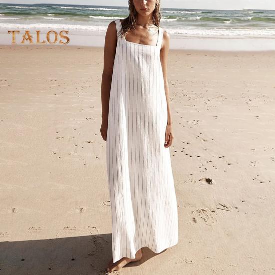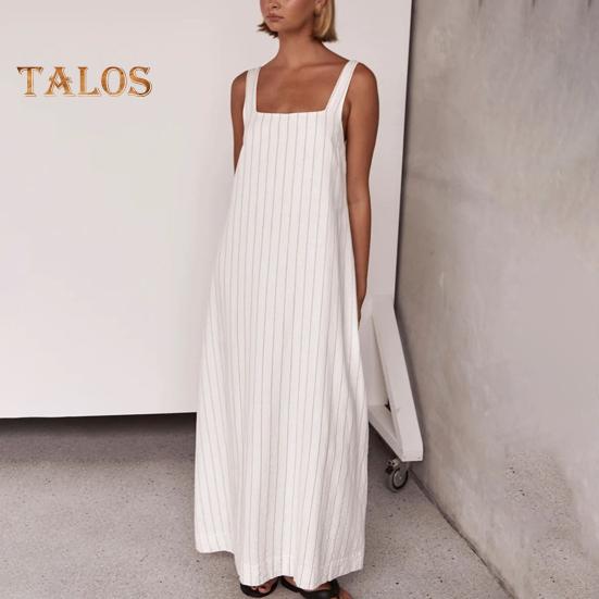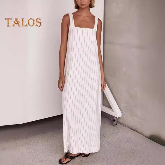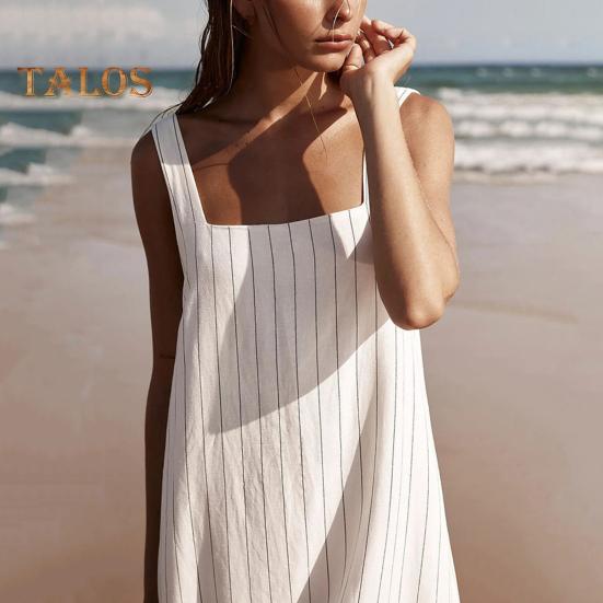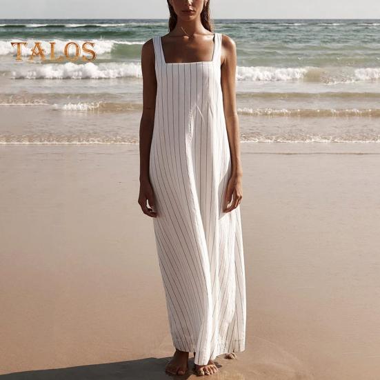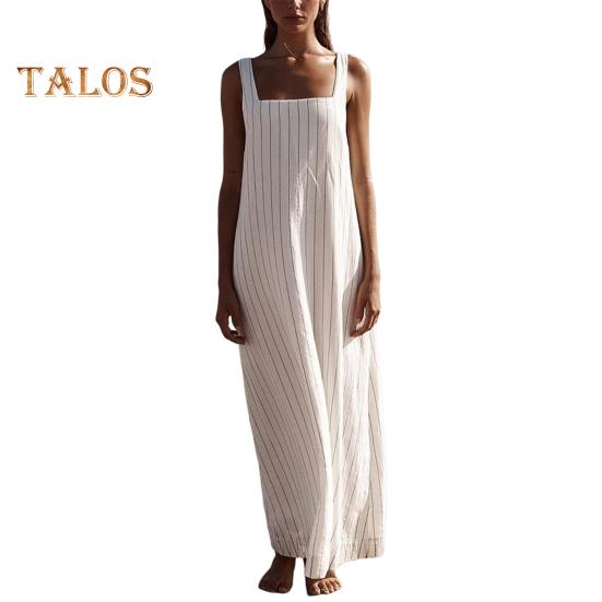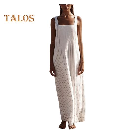 Подчеркните свой стиль с помощью этого модного и повседневного женского платья.. Это платье без рукавов с квадратным вырезом, свободной посадкой и элегантным полосатым принтом, придающим вашему гардеробу нотку простоты..
