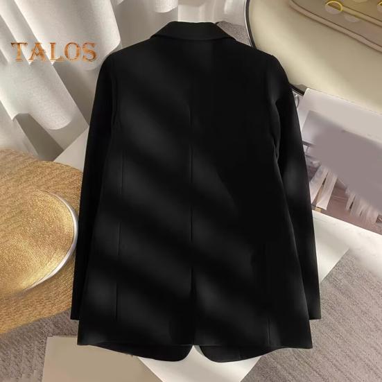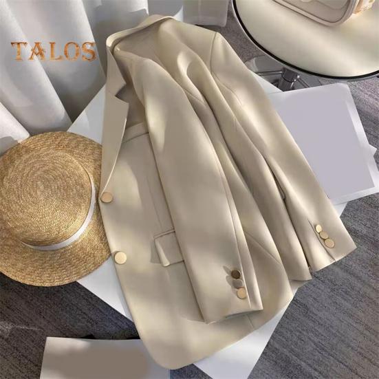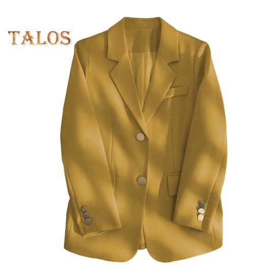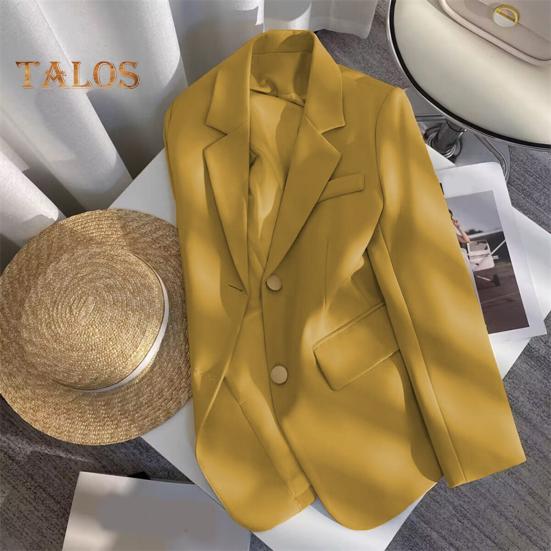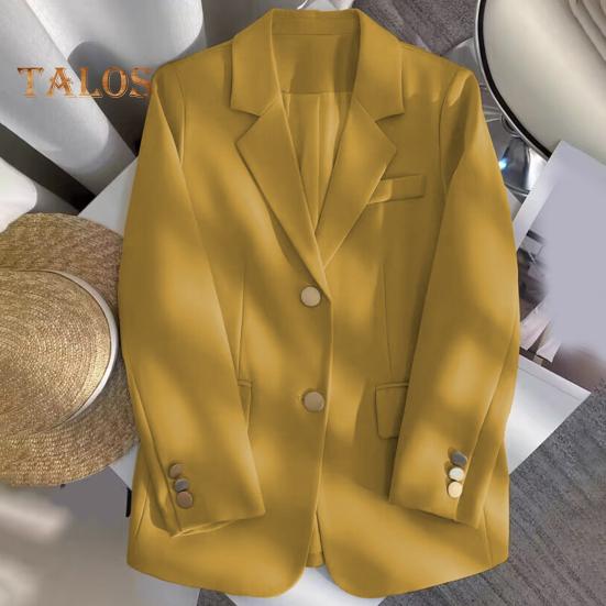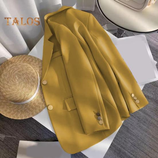 Женский пиджак – универсальное и стильное дополнение вашего гардероба.. Эта куртка свободного кроя с классическими лацканами и длинными рукавами имеет повседневный свободный крой и застегивается на две пуговицы.. Однотонный дизайн придает ему ощущение высокого класса и делает его идеальным для различных случаев.