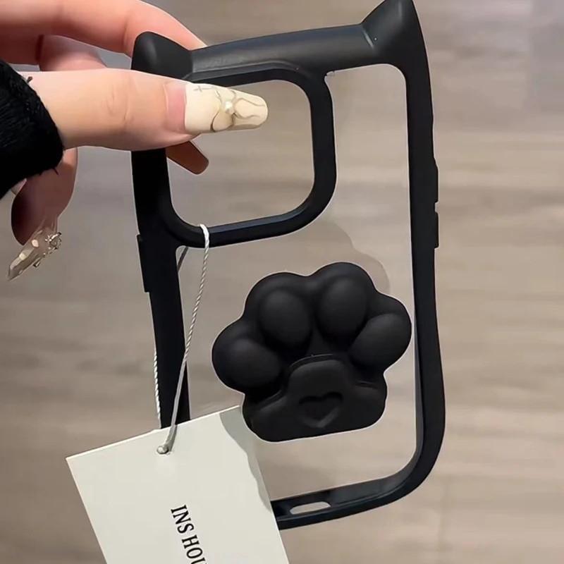 Милый 3D чехол-держатель для телефона с кошачьими ушками и когтями для iPhone 15 14 13 12 11 Pro Max Plus XR акриловый прозрачный чехол-подставка