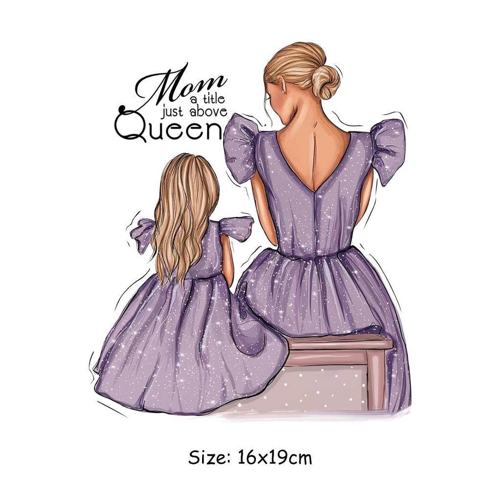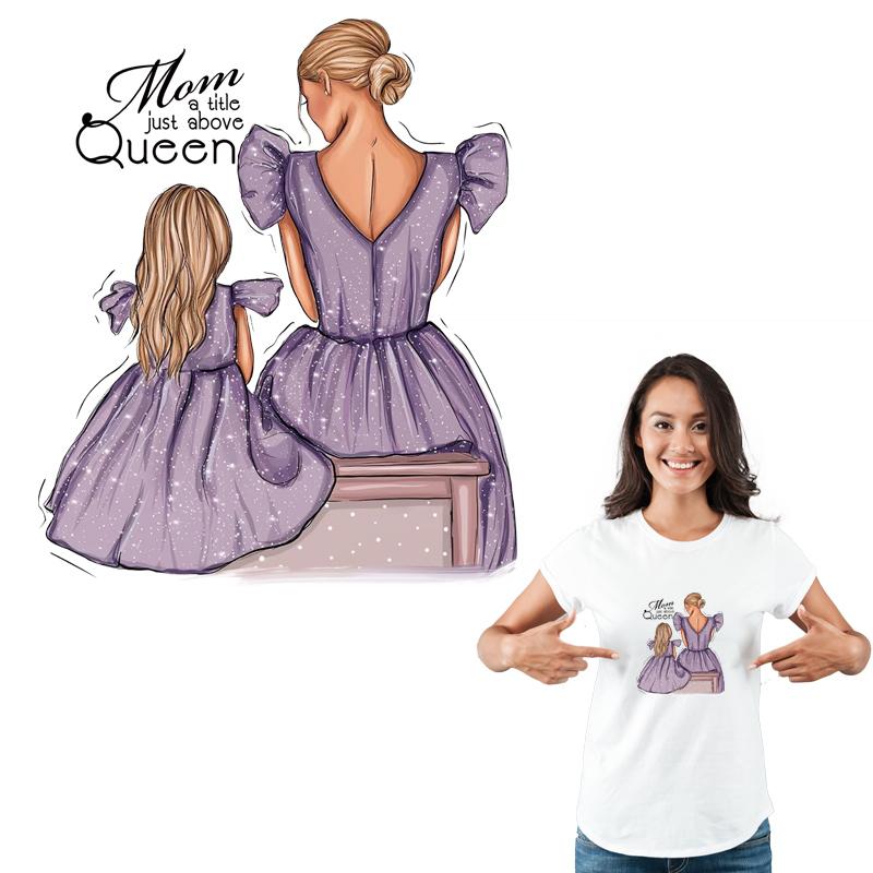 16x19 см мама девочка утюг на нашивке с принтом на футболке, платья, наклейки, сделай сам, моющиеся аксессуары для одежды, теплопередающая наклейка на одежду