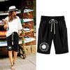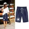 Шорты больших размеров для женщин, эластичные пышные хлопковые льняные шорты-бермуды с эластичной резинкой на талии, повседневная пляжная одежда