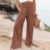 Льняные брюки, женские удобные струящиеся широкие брюки, летние пляжные брюки-палаццо с высокой талией и карманами — купить товар онлайн с бесплатной доставкой до всему миру!
