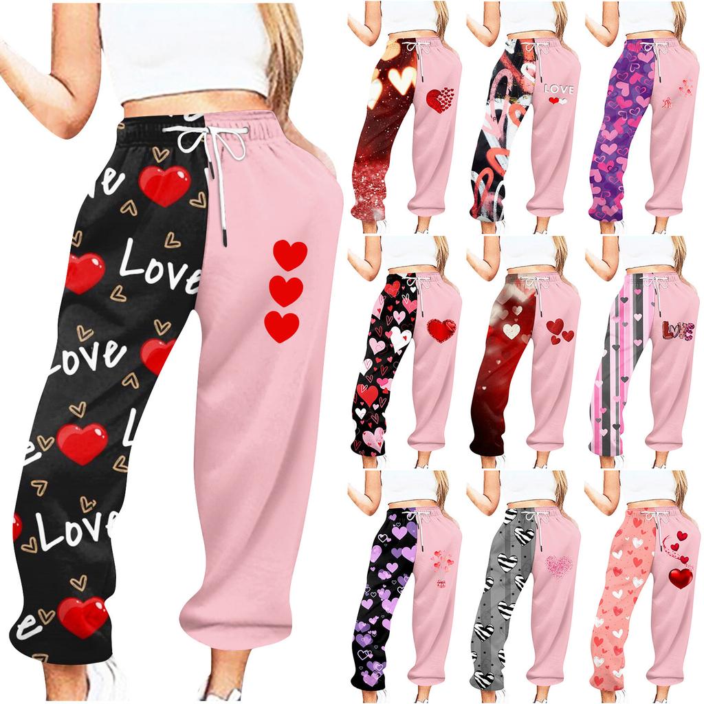 Женские повседневные модные повседневные брюки с принтом на День святого Валентина Брюки с завязками на шнурке — купить товар онлайн с бесплатной доставкой до всему миру!
