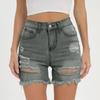 Женские повседневные джинсовые шорты со средней талией, эластичные джинсовые шорты с карманами и рваной бахромой