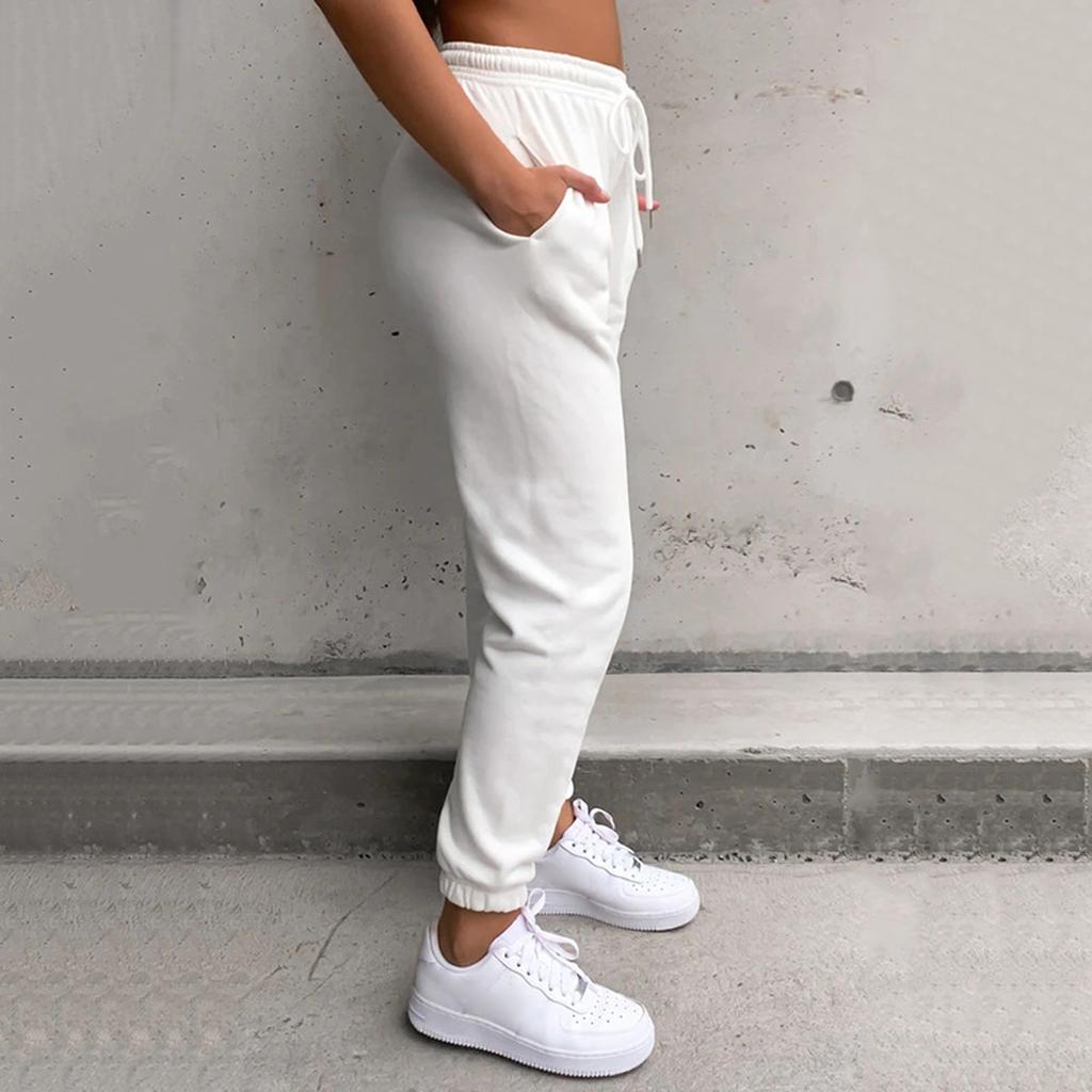 Женские повседневные спортивные брюки для бега с эластичной лентой на шнурке и карманами