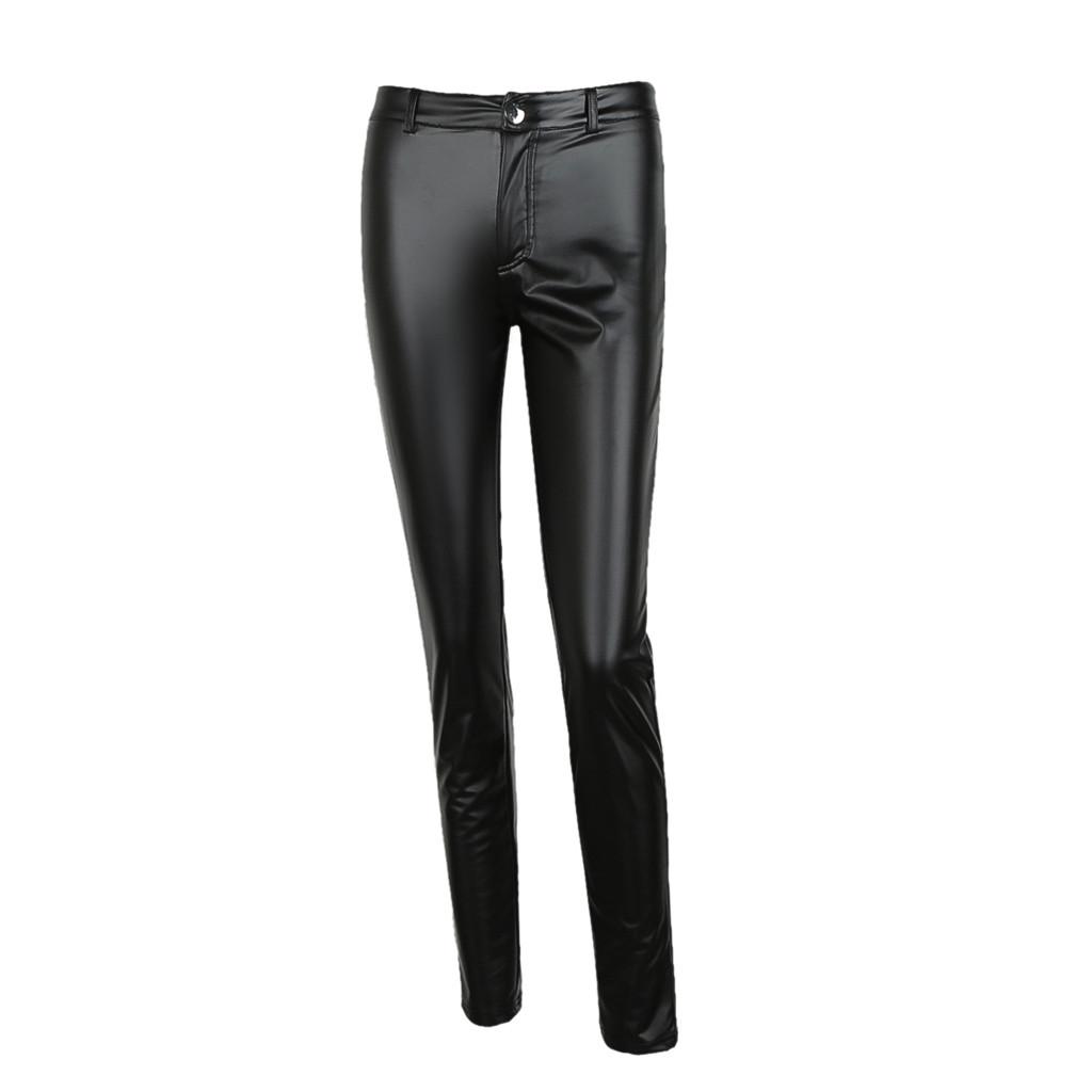 Женские однотонные черные тонкие кожаные брюки, повседневные эластичные брюки-карандаш, толстые брюки