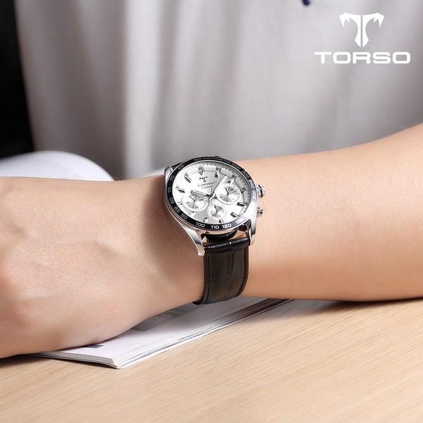 TORSO Мужские металлические часы Torso T503M Cassiopeia Multi Diamond Watch (кожаный ремешок в комплекте),Корейские популярные часы