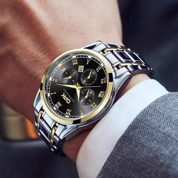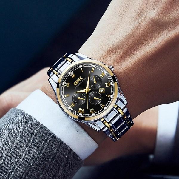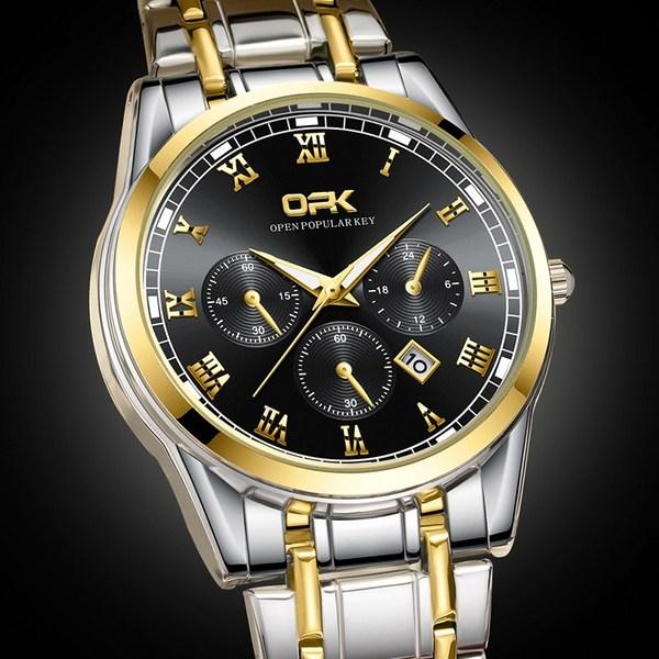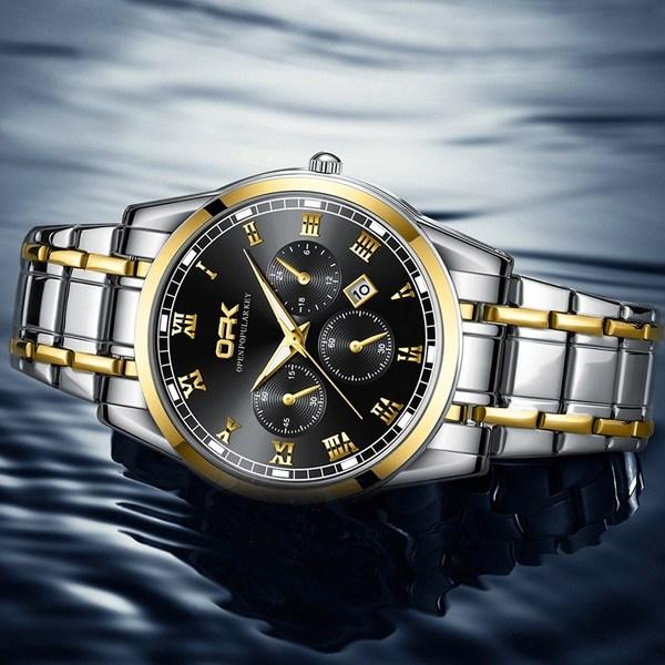 Abhill OPK Мужские роскошные водонепроницаемые кварцевые металлические часы, популярные корейские часы