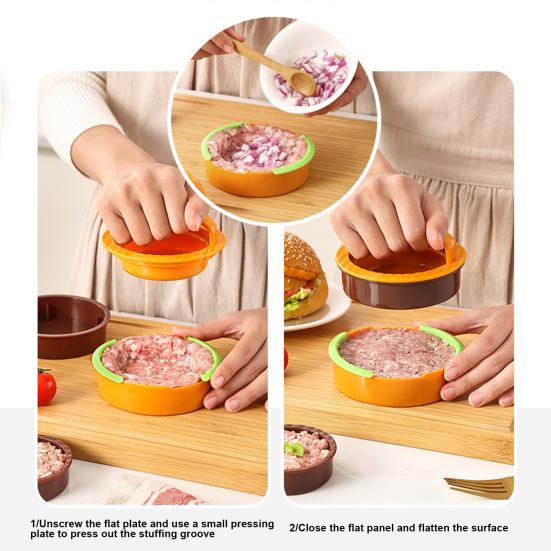 Многофункциональный дизайн: Помимо стандартных котлет, этот инструмент предлагает универсальность, позволяющую создавать слайдеры, гамбургеры с начинкой или даже булочки для сэндвичей с помощью ножа для хлеба.. Улучшите свои кухонные творения без особых усилий.