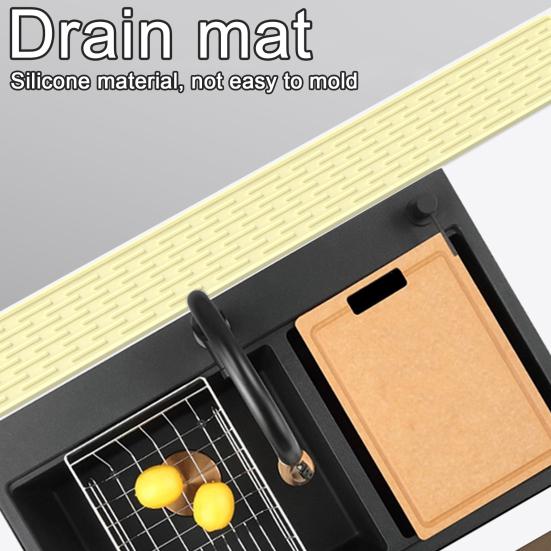 Универсальная защита: Этот дренажный коврик большого размера, созданный с учетом функциональности, обеспечивает эффективную защиту столешницы кухонной мойки от ожогов, царапин, пятен и других повреждений.