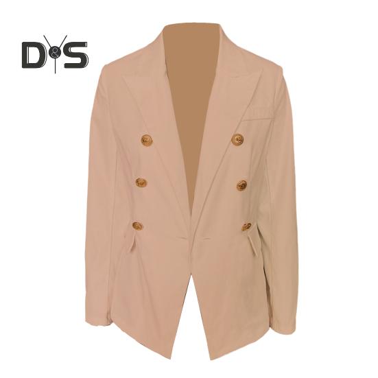 Этот классический пиджак в костюмном стиле имеет приталенный крой, кардиган с лацканами и длинные рукава с манжетами на пуговицах, что делает его универсальным предметом гардероба, который легко переходит от офисных встреч к вечерним прогулкам.