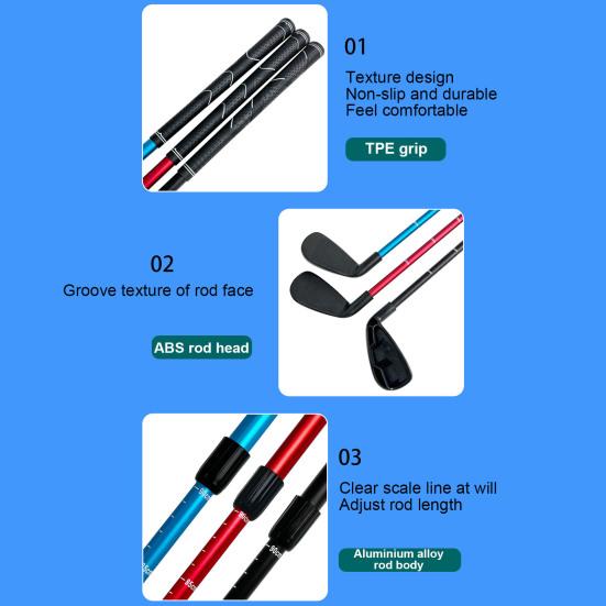 Регулируемая двухсекционная конструкция: Гольф-клюшка имеет универсальную регулируемую конструкцию из двух секций, подходящую как для левшей, так и для правшей.. Легко регулируйте длину в зависимости от возраста, а четкие линии шкалы обеспечивают точную индивидуализацию.
