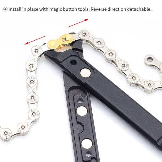 Эффективное обслуживание велосипедной цепи: конструкция из алюминиевого сплава обеспечивает долговечность и легкость в обращении. Встроенный отсек для хранения магнитов надежно удерживает крючки и звенья цепи, обеспечивая удобный доступ во время ремонта или установки.