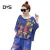 Женская футболка, комплект из 2 шт./компл., комплект брюк в стиле хип-хоп с принтом и V-образным вырезом, топ с короткими рукавами, укороченные брюки с ремешками на щиколотке, уличная одежда, дорожная повседневная одежда