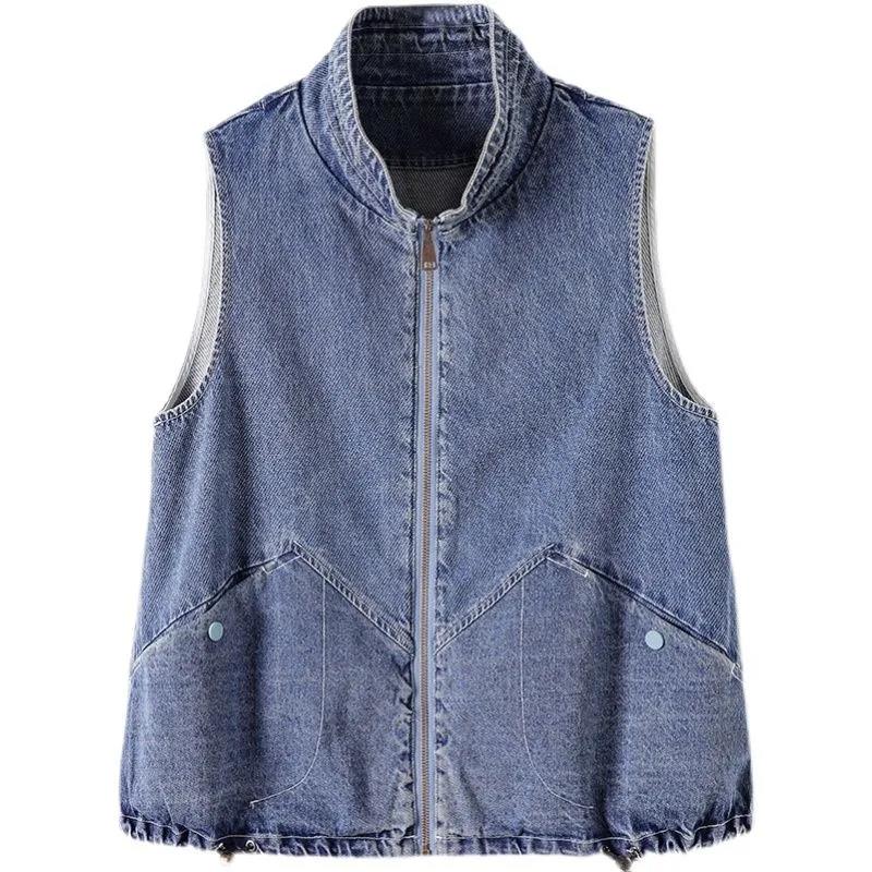 Джинсовый жилет больших размеров без рукавов, весна-лето и осень, женская куртка, жилет, женские топы, ковбойский жилет