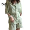Женский пижамный комплект из 2 шт./компл., контрастный цветной полосатый принт с лацканами, с коротким рукавом, эластичная талия, свободная широкая домашняя одежда, одежда для сна, блузка, шорты, комплект