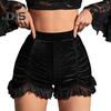 Женские шорты, кружевные лоскутные однотонные брюки с высокой эластичной резинкой на талии, облегающие темные стильные плиссированные брюки с нерегулярным подолом, супер короткие брюки, клубные брюки для вечеринок