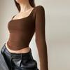 Вязаная внутренняя футболка с квадратным вырезом и длинными рукавами в Европе и США, женская сексуальная тонкая блузка с коротким абзацем и пупком, большие размеры
