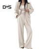 Стиль: Создайте универсальный и шикарный образ с этим костюмом свободного кроя, излучающим элегантность и уверенность.. Сочетание верха костюма и брюк представляет собой современный вариант классического офисного наряда, идеально подходящий для современной женщины.