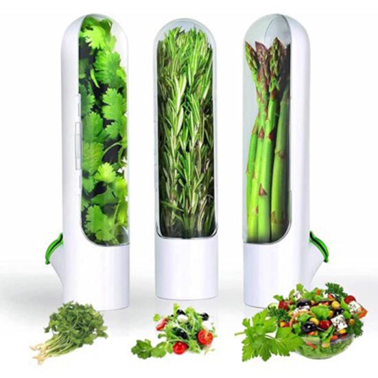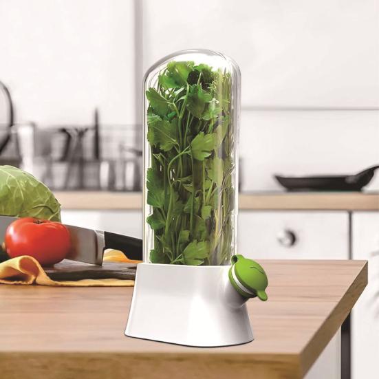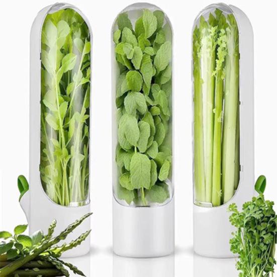 Сохранения свежести: Сохраните свежесть и вкус кинзы с помощью этого специального решения для хранения.. Целью дизайна является сохранение кинзы хрустящей и готовой к использованию, что увеличивает ее долговечность в холодильнике.