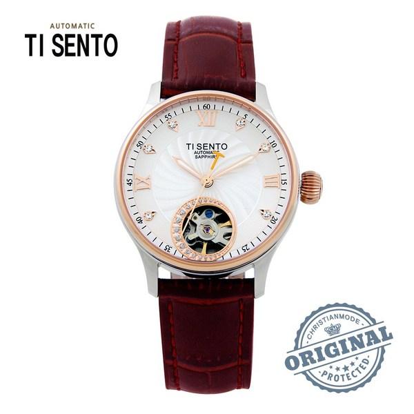 [Ticento]Skeleton Automatic TS50301 CBRE Women’s Red Leather Watch, Korean Luxury Watches