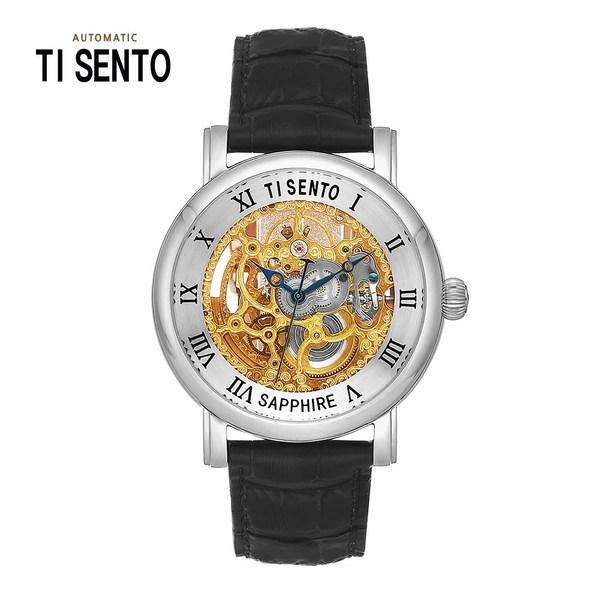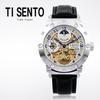 [Ticento]Автоматические скелетонные кожаные часы TS50061WTBK, Корейские роскошные часы