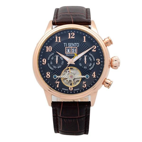 [Ticento]Многофункциональные автоматические часы Open Heart из кожи TS50071BROCH, Корейские часы класса люкс