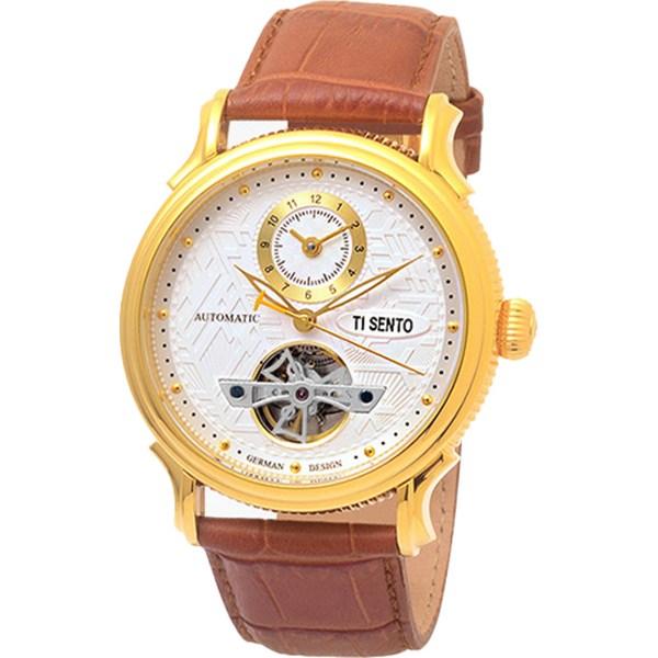 [Ticento]Men’s automatic leather watch TS50011GD DUAL, Korean Luxury Watches