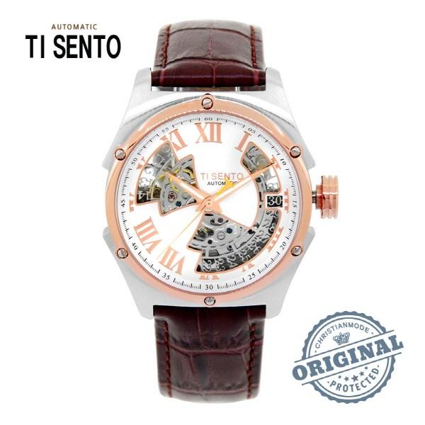 [Ticento]Men’s Automatic Leather Watch TS60031RGCH, Korean Luxury Watches