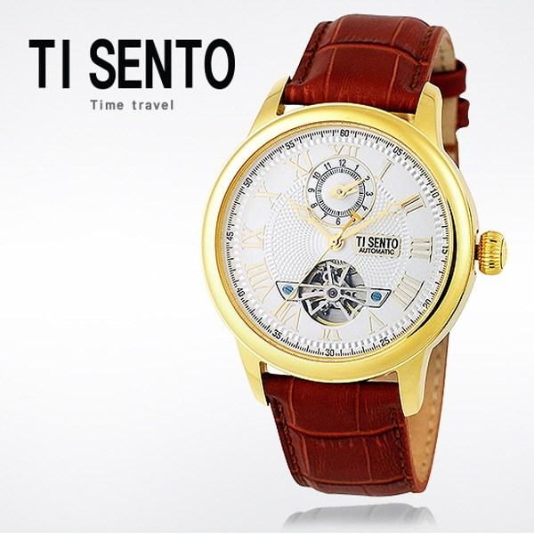[Ticento]Men’s automatic leather watch TS50041GD DUAL, Korean Luxury Watches