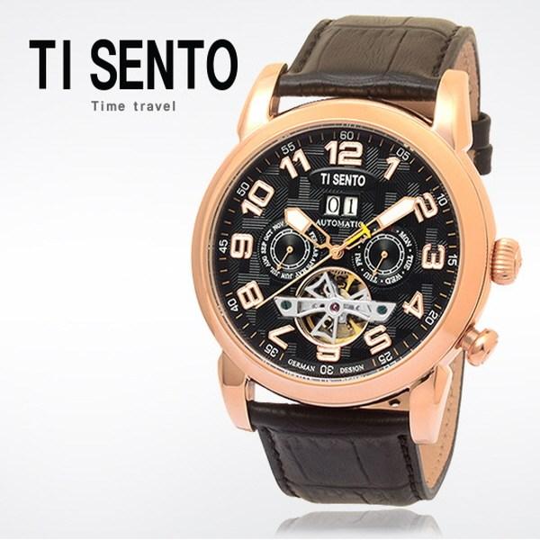 [Ticento]Мужские автоматические кожаные часы TS50031RGB DUAL, Корейские роскошные часы