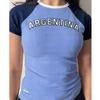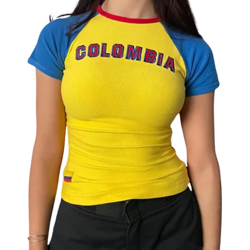 Европейский и американский женский короткий топ Y2K для девочек с вышитыми буквами, обнаженным пупком, облегающая футболка с короткими рукавами и круглым вырезом
