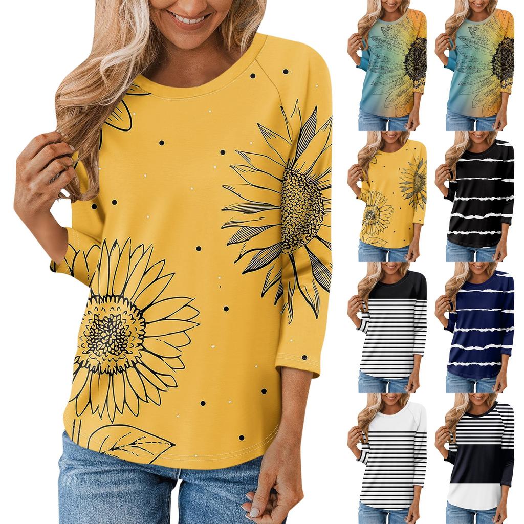 Женская модная повседневная рубашка с круглым вырезом и рукавами 3/4, свободная футболка с принтом, женский топ — купить товар онлайн с бесплатной доставкой до всему миру!
