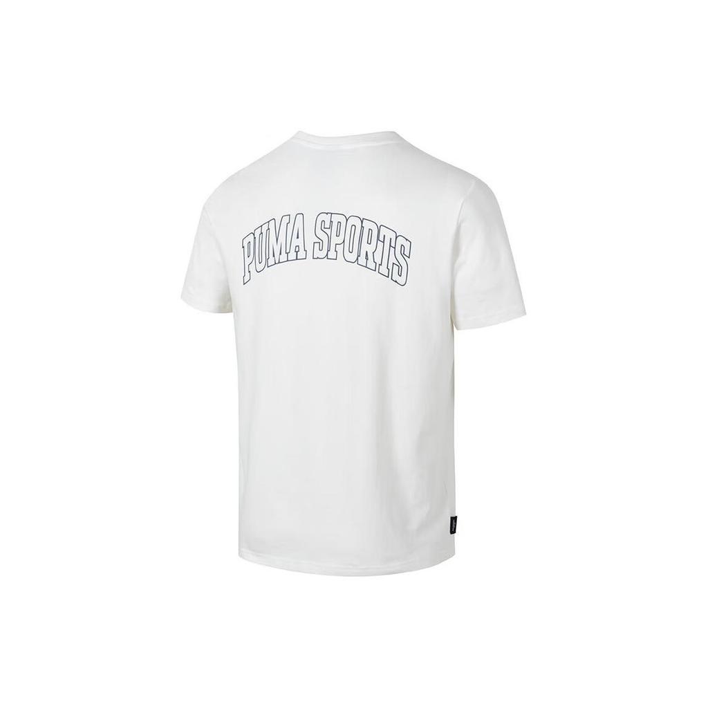 Puma Ретро-американская дышащая повседневная футболка с круглым вырезом и логотипом, мужские топы, белые 630353-65